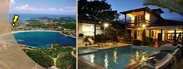 Localização privilegiada pois, está a apenas 800 mts da bela Praia da Ferradura e a 900 mts da famosa Rua das Pedras, a Rua que nunca dorme. Pertinho das paradisíacas praias da Ponta da Lagoínha, Foca, Forno, Tartaruga e a 1500 mts da badalada Praia de Geribá,no coração de Buzios . Para quem gosta de "descansar trabalhando", tem INTERNET WI-FI Free